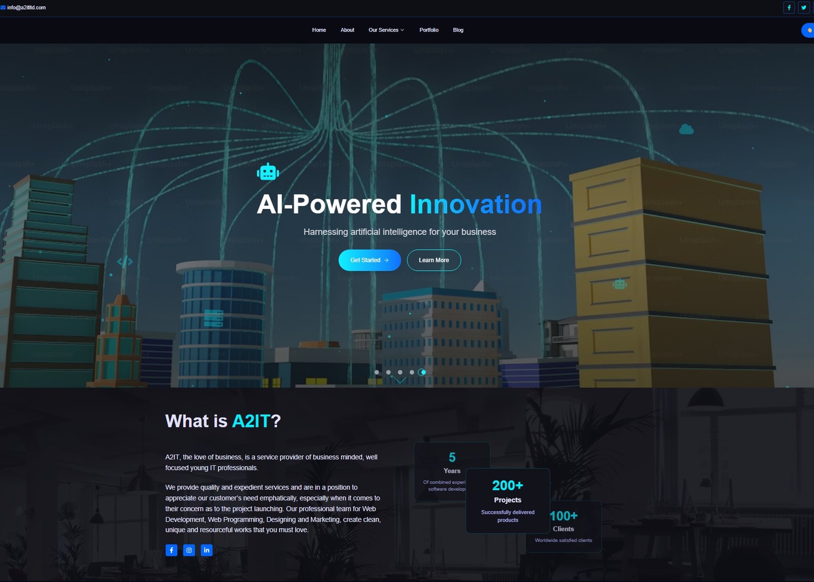 A complete corporate website for A2IT Ltd featuring service showcases, dynamic content, contact automation, and an interactive map.